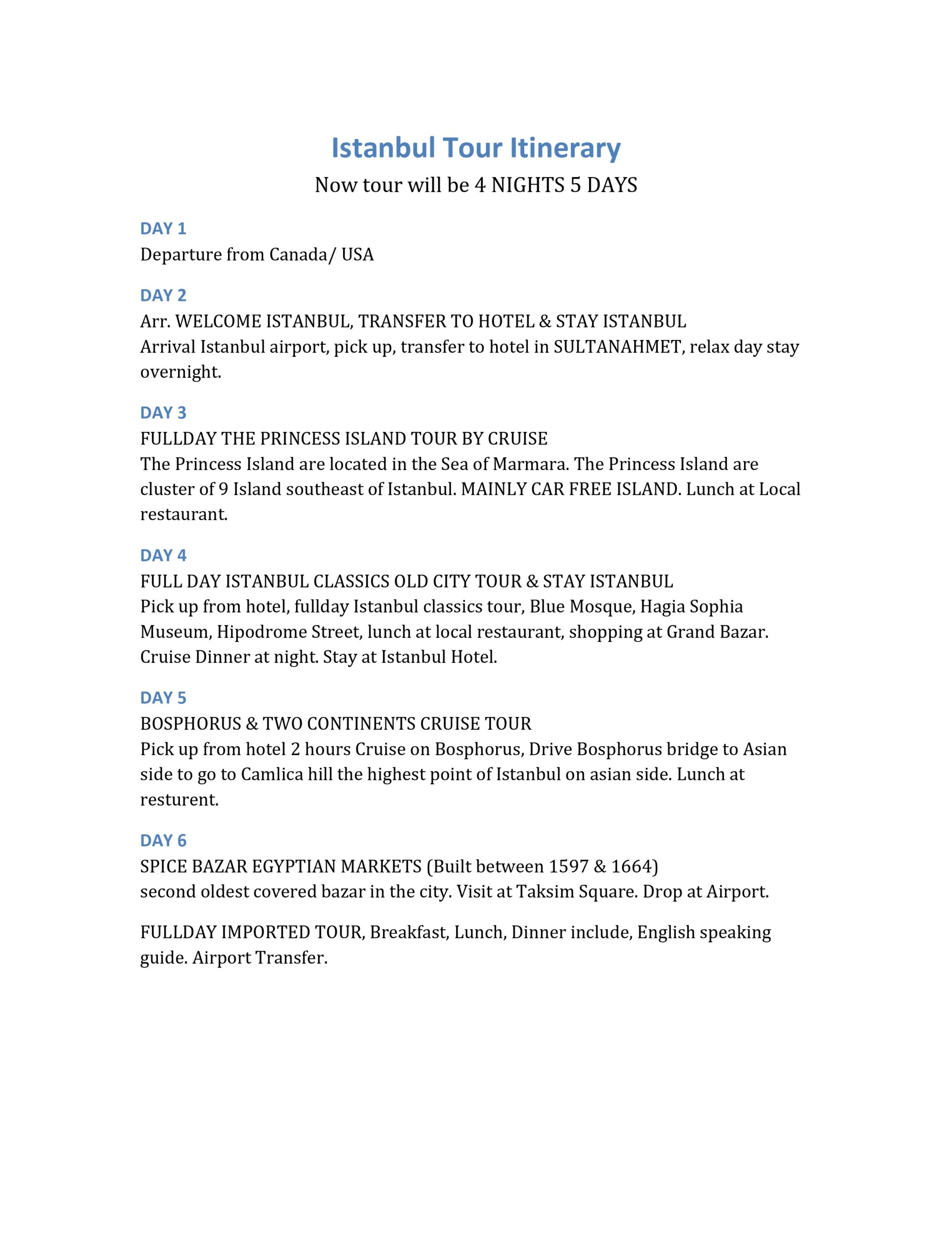 4 NIGHTS & 5 DAYS TOUR PACKAGE ISTANBUL